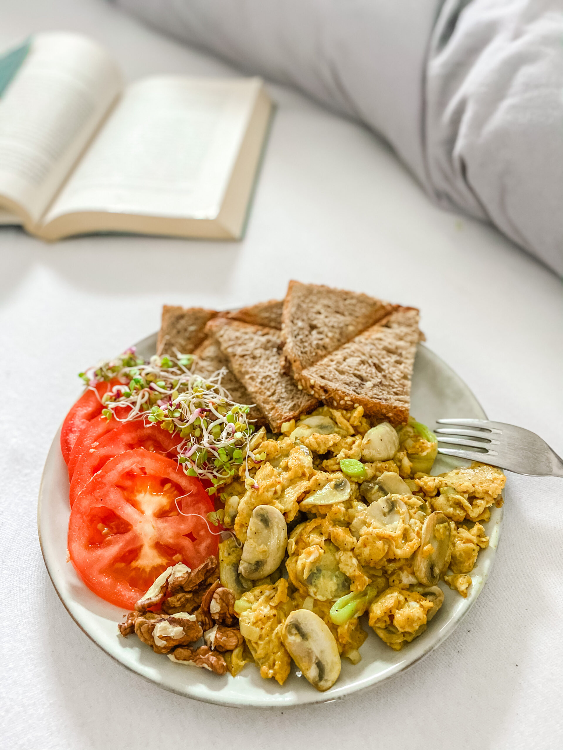 Jajecznica z porem i pieczarkami
