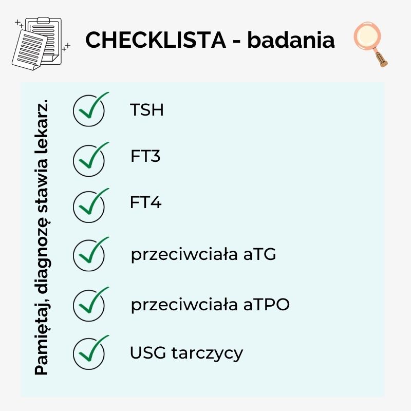 Jeśli wyniki badań wskażą na niedoczynność, następnie należy oznaczyć poziom przeciwciał tarczycowych oraz wykonać badanie USG:
