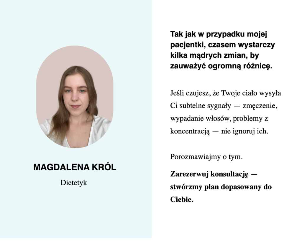 Naszym celem było stworzenie diety normokalorycznej, która nie tylko wyrówna poziom ferrytyny, lecz także wesprze funkcjonowanie tarczycy i poprawi ogólne samopoczucie.