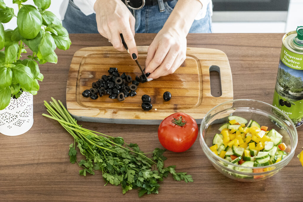 Sałatka śródziemnomorska z kaszą jaglaną, oliwkami i serem feta